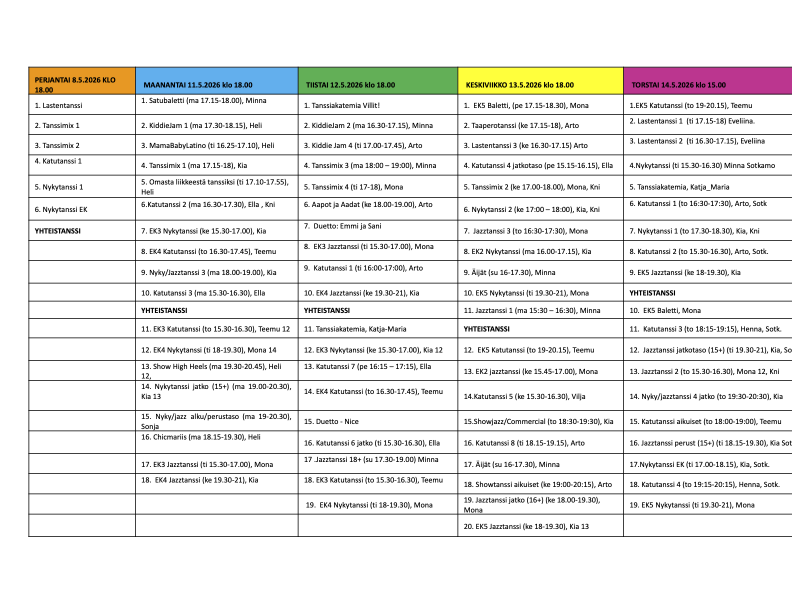 Tästä löydät alustavan esiintymisjärjestyksen.